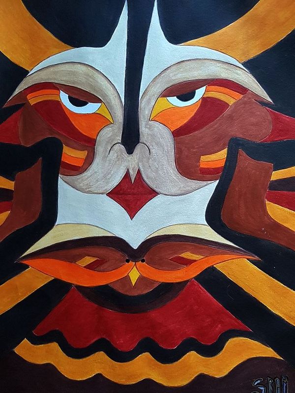 Automne, je suis très inspirée par cette saison, pour moi c'est la plus belle, je nourris les oiseaux dans mon jardin, j'imagine en regardant ce visage un masque, un face à face d'oiseaux aux couleurs de saison.